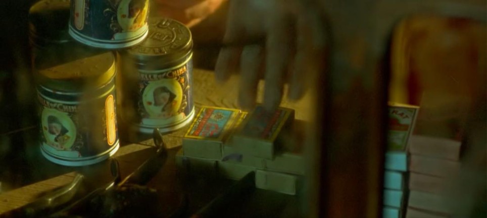 徐先生请客烟具店伙计吃路边摊这段戏,两盏油灯细节到位, 在布光上非常克制。